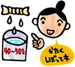- 水に溶ける汚れは、温湯(40~50℃)に浸した布を固く絞って、たたく(汚れを浮かす)ように拭いてください。