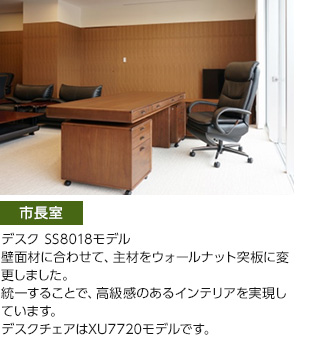 庁舎の移転新築にあたり、カリモクでは市長室などに家具を納入させていただきました。