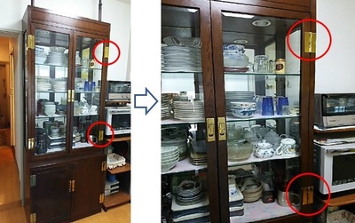 お宅訪問/飾り棚・扉蝶番の取り替え修理