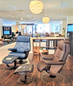カリモクの長年に渡る「座り心地研究」が生み出した究極のプレミアムチェア「ザ・ファースト」。本社ショールームでは全てのモデルをご体感いただく事が可能です。