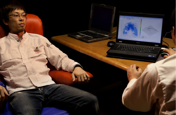「心理計測」では、座ったときの疲労度や負担度、さらにABどちらの座り心地がいいかなどを測定。「生体測定」では、座ったときのからだの状態(血流や骨盤の傾斜角など)が適切な範囲内であるかなどを測定します。適切な範囲内とは、約1000人の被験者からとった独自のデータや、人間工学研究所が調査した全国3万人のデータをもとに算出した判断基準のこと。計測した数値がこの範囲内であれば快適であると判断できる目安です。