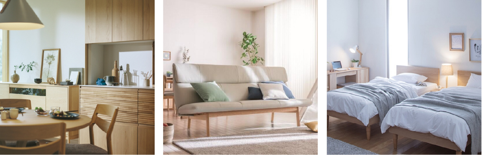 カリモクは、リビング・ダイニング・子供部屋・書斎・ベッドルームまで、住まいをトータルにコーディネートできる家具をラインナップ。イメージ通りの家具をお選びいただけるよう塗装色や張地・サイズなどのオーダーメニューを幅広く取り揃えています。また、主力ブランドの「カリモク」をはじめ、最高峰ブランド「ドマーニ」、異業種とのコラボブランドなど、多彩な商品ブランドを展開。総合家具メーカーとして、理想の住まいに寄り添う家具をトータルに提案しています。