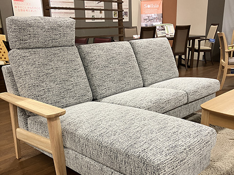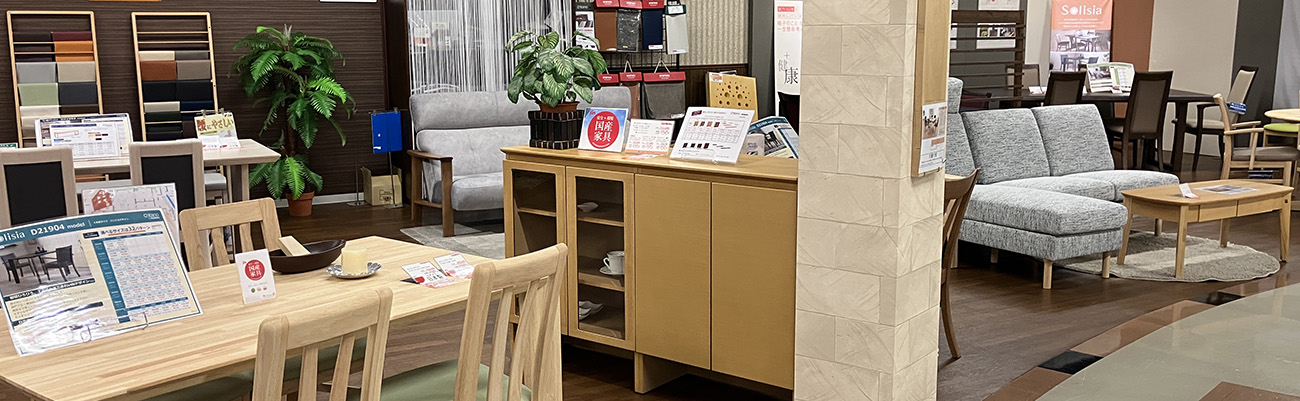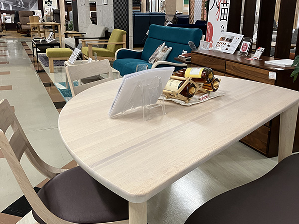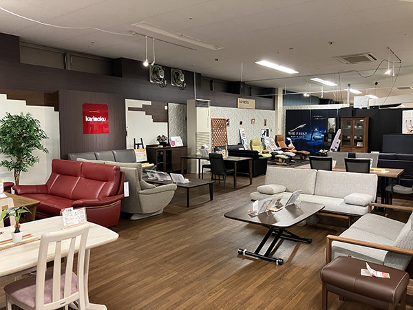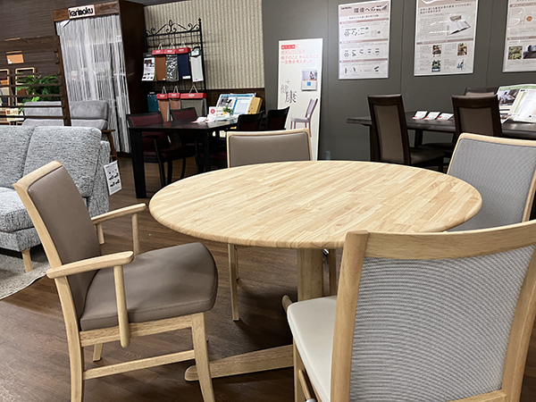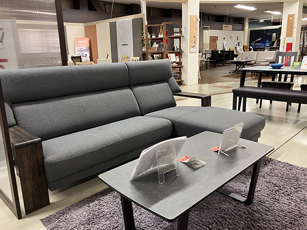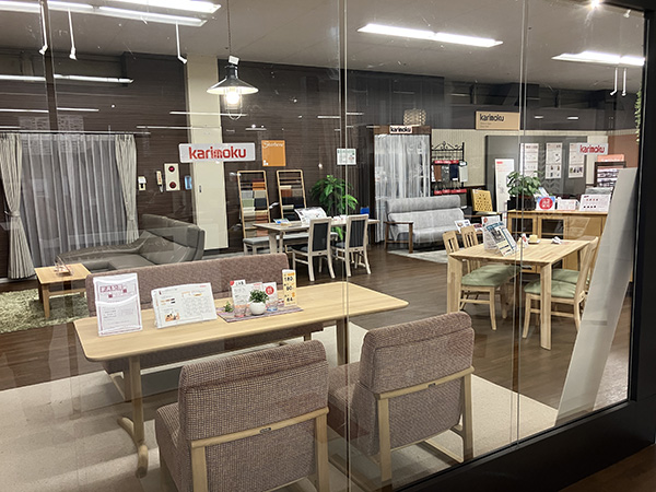 北海道エリアの“カリモクギャラリー”です。店舗の2階に展示しております。腰にやさしい座り心地研究ソファーや、お掃除しやすい軽量ダイニングチェアーなど、国産メーカーならではのこだわった家具を店頭にてご体感ください。お待ちしております。