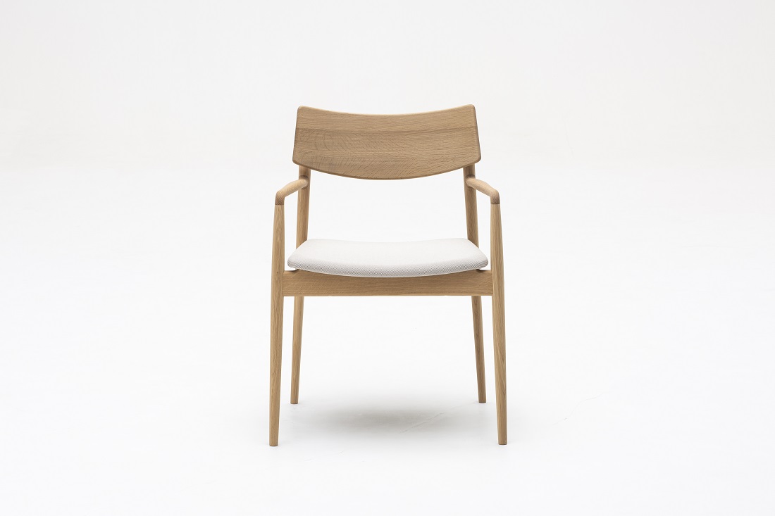 「Karimoku Case(カリモクケース)」ブランドより、アームチェア A-DC02モデルを出展します。建築家・プロダクトデザイナーの芦沢啓治氏によって、渋谷のカフェのためにデザインされたダイニングチェアです。