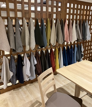 館内にはルームコーディネートを各所に設置。実際の空間・家具の見え方などを具体的にご体感いただけます。張地や木部のオーダーイメージを実物でご確認いただくコーナーも設けています。“ご自宅の図面”をお持ちいただくと、より具体的なサイズや色などのアドバイスも差し上げられます。ぜひ“ご自宅の図面”をお持ちください。
