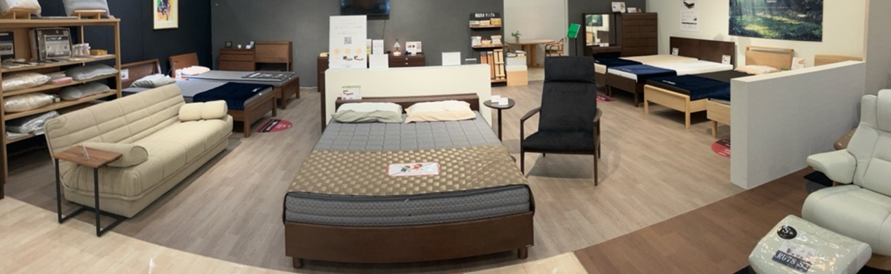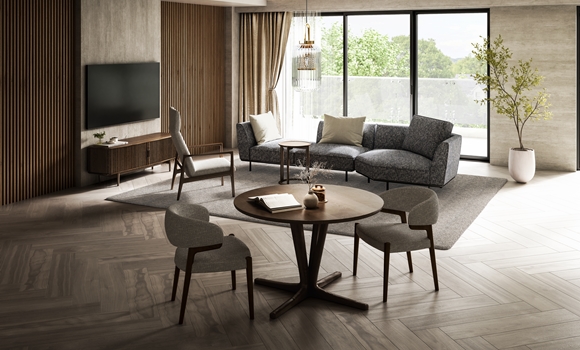 広いフロアに様々なイメージ・アイテムの家具を展示する、木製家具メーカーショールームです。一つひとつ体感しながら、じっくりと家具選びがお楽しみいただけます。どなたでも自由にご覧いただけます。