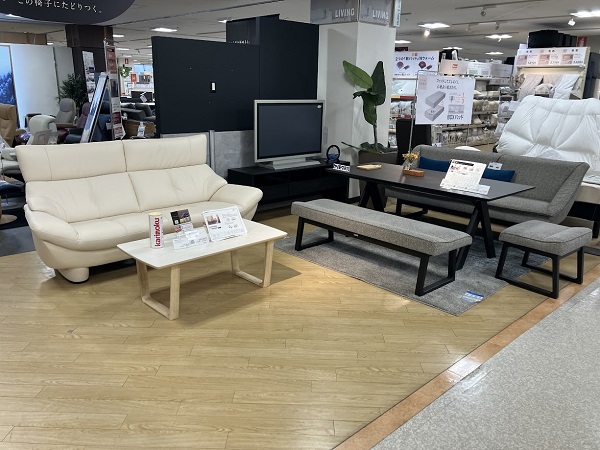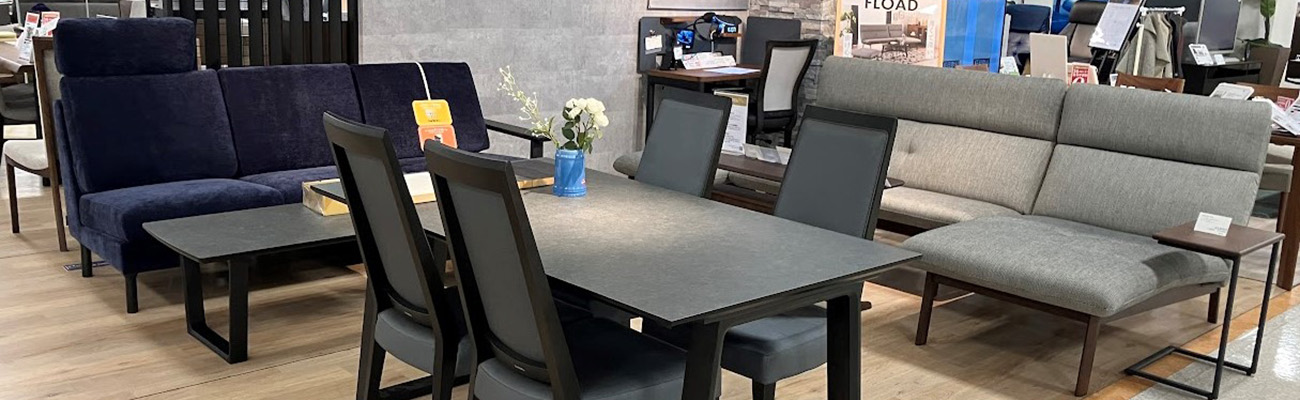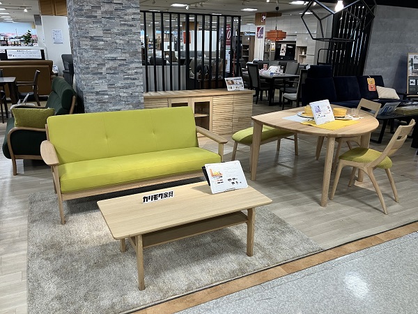 ソファとダイニングでカラーを揃えたり、TVボードと同じ塗装色のテーブルを合わせてみたり、さまざまなコーディネート空間をご体感頂けます。