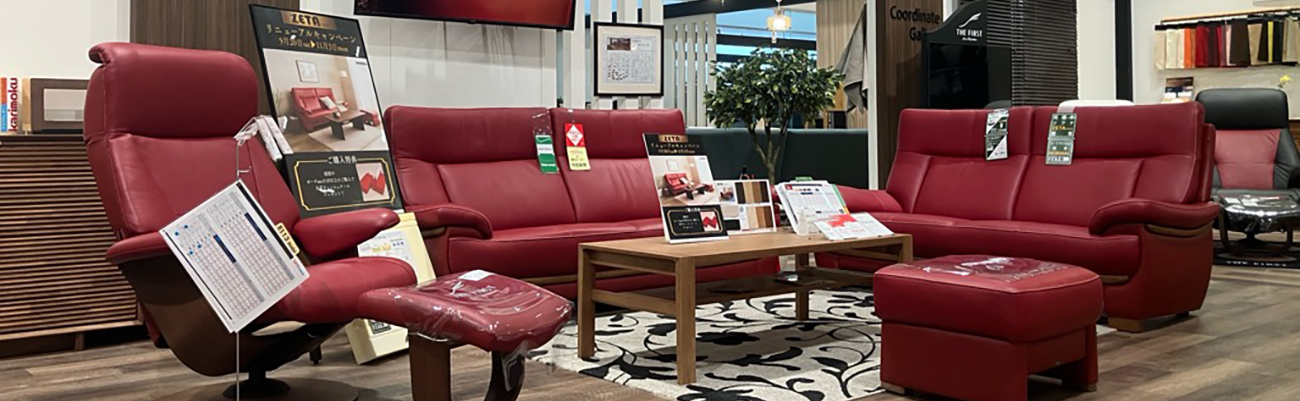 ギャラリーで展示しているソファー、ダイニングチェアーは