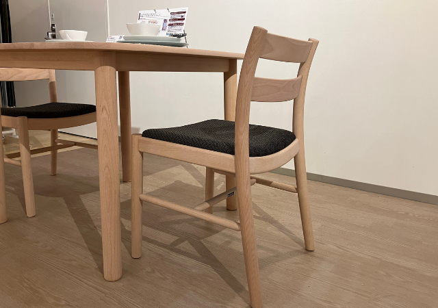 カリモク家具仙台ショールームでは、2025年新作 CANTINETTA(カンティネッタ)シリーズのダイニングチェア[CB52モデル]を展示しました。
