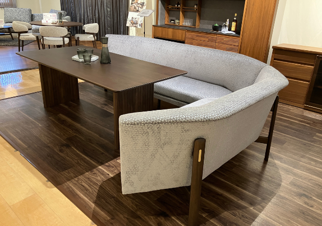 カリモク家具仙台ショールームでは、2025年新作 PLEVIO(プレヴィオ)シリーズのソファ[UW03モデル]を展示しました。