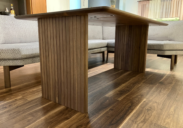 テーブルの脚部は一本一本ていねいに加工と調整を施した縦スリットデザインです。