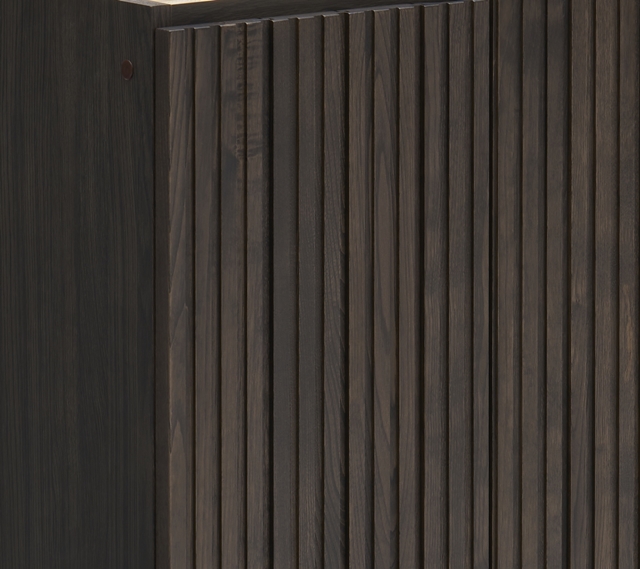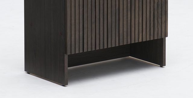 削り出したパーツを丁寧に継ぎ合わせた扉は、どの角度から見ても美しく、扉を開けても閉めても空間に洗練された印象を与えます。