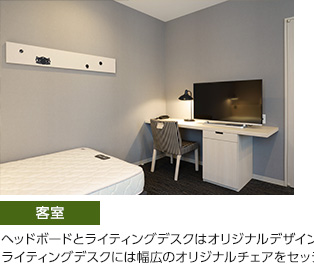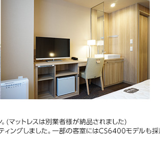 仙台駅東口に2016年4月に新たにオープンしたホテルです。ビジネスだけでなく観光などのレジャー需要にも幅広く対応する宿泊主体型で、バスルーム・トイレ・洗面台を別々に設ける「3点独立型」の客室を多く設置する一方、シャワールームの部屋を設けるなど、幅広いお客様のニーズに対応しています。大浴場も設置されているのでゆったりとくつろいで滞在できます。朝食には、地元産の新鮮な食材を使うなど、レストランの食事にもこだわりをお持ちです。カリモクでは客室・エントランス・食堂などの家具一式を納品させていただきました。