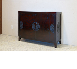 いろり風のテーブルで、天板中央の上蓋が取り外しができ、中に銅板が設置してあります。さらに脚は、中央のボックス型の箱脚でまわりから座りやすい構造になっていますので、お鍋などを囲んでの食卓に最適なタイプです。