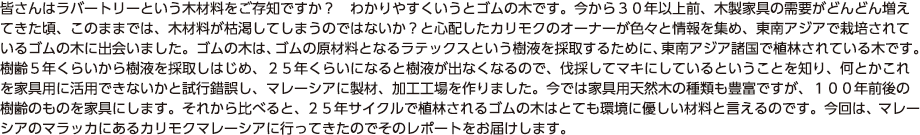 その他、各種フェアのご紹介や「カリモクマレーシア」現地レポートもお届けいたします。