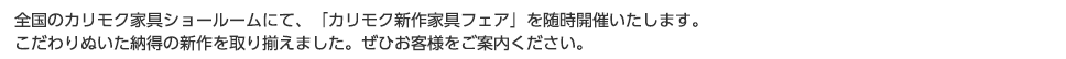 | 弊社ショールームにて「カリモク家具 2016年新作発表会」を開催いたします。新作をいち早くご覧いただけるチャンスですので、ぜひこの機会にご来場ください。また、後日ユーザー様イベントもございますので、お客様をぜひご案内ください。 | ||||
