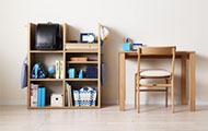 家族と一緒の空間でふれあいながら学ぶリビング学習。使う場所や年齢、使う人に合わせて、いつからでも最適な環境づくりができるよう、カリモクではますます充実したデスクや収納アイテムをご提案いたします。