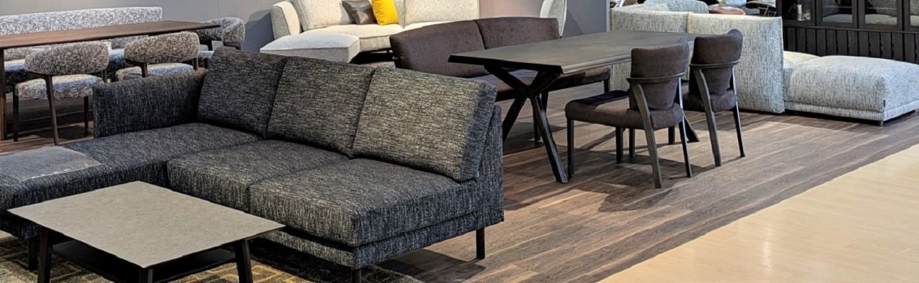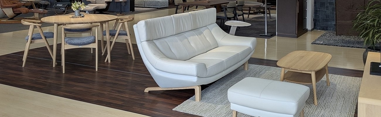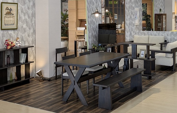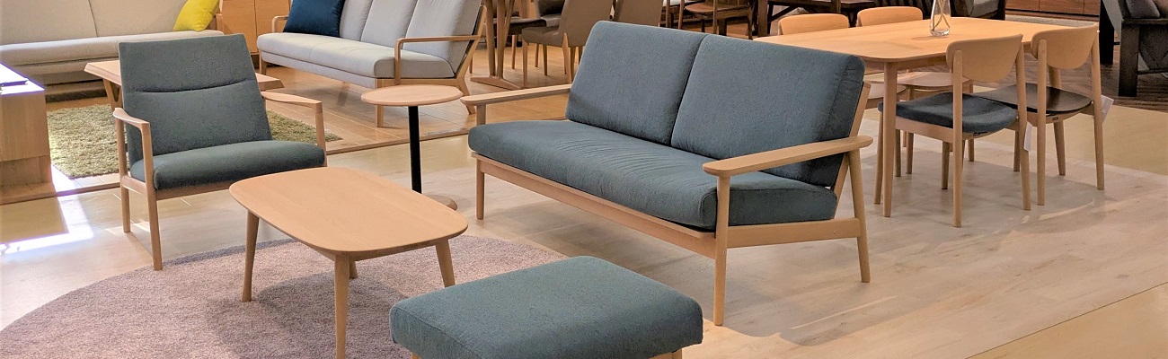 広いフロアに様々なイメージ・アイテムの家具を展示する、木製家具メーカーショールームです。一つひとつ体感しながら、じっくりと家具選びがお楽しみいただけます。どなたでも自由にご覧いただけます。