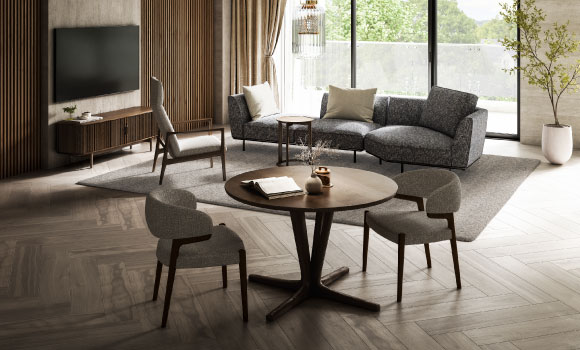 お部屋のアクセントとして、カリモクオリジナルラグをご提案しております。お部屋のコーディネートをお楽しみください。
